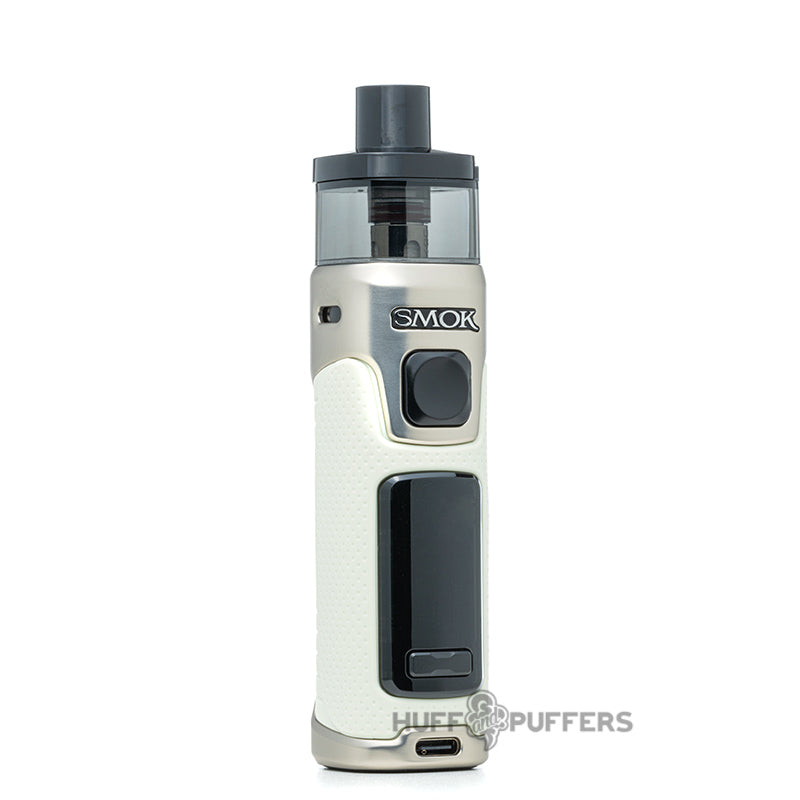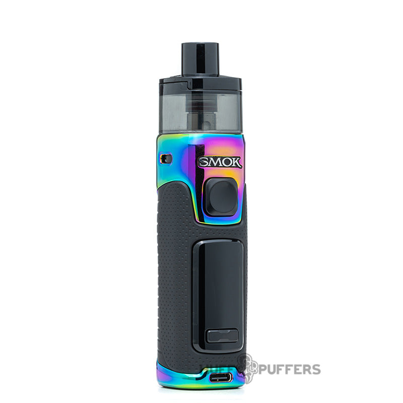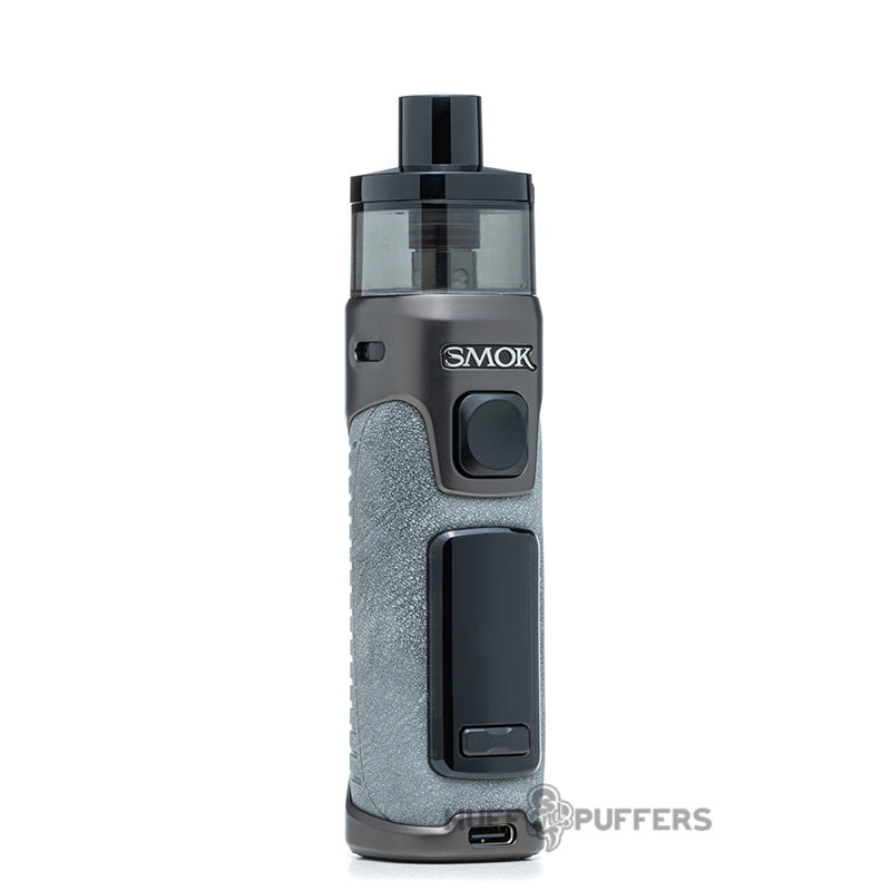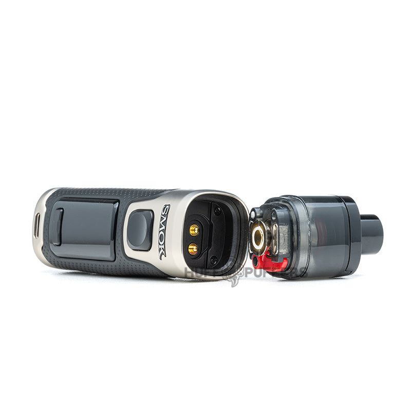 The Smok RPM 5 Pod System is the next leap forward in the RPM Lineup of pod systems that features an 80 watt maximum output and internal 2000 mAh rechargeable battery. Users can charge the vape mod with the included USB Type-C cable, and it also features a single firing button with dual button adjustments. A large 0.96 inch color LED screen displays all vaping parameters, and the system uses a refillable pod. The pod magnetically attaches to the device and has a 6.5 mL vape juice capacity that is filled via the sliding top fill port. Included with the kit is a 0.23 and 0.15 ohm Meshed coil that delivers a bold vaping experience.