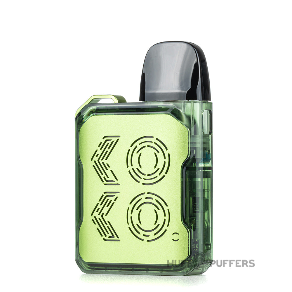 The Uwell Caliburn GK2 is a small and compact pod system that has an 18 watt maximum output and 690 mAh rechargeable internal battery. It features a draw-activation firing mechanism and utilizes a 2.0 mL refillable pod and coil system that is also airflow adjustable. The coils are installed through a simple press-fit mechanism and includes a 0.8 ohm and 1.2 ohm mesh coil for bolder vaping experience. The vape device also features LED indicator lights for battery feedback, and even includes a lanyard for convenient traveling.