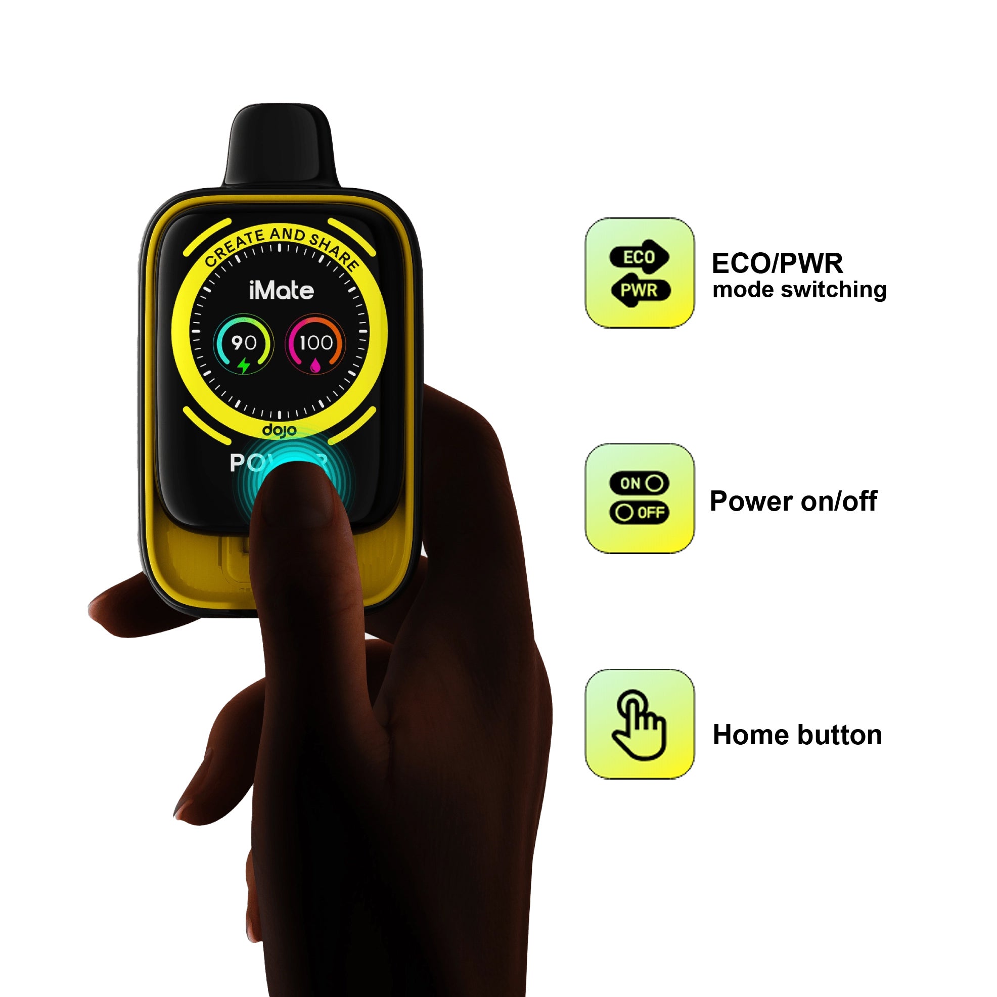 • Advanced Control, Personalized Experience: Stay fully in control with a large HD display that shows real-time battery and e-liquid levels, along with customizable theme wallpapers to suit your style. With smooth magnetic pod sliding connections and an ergonomic design, the Dojo iMate X 20K is reliable, flavorful, and built to elevate your everyday vaping experience.