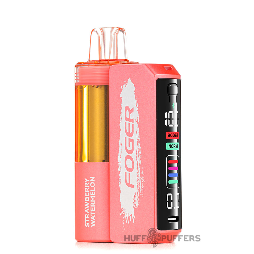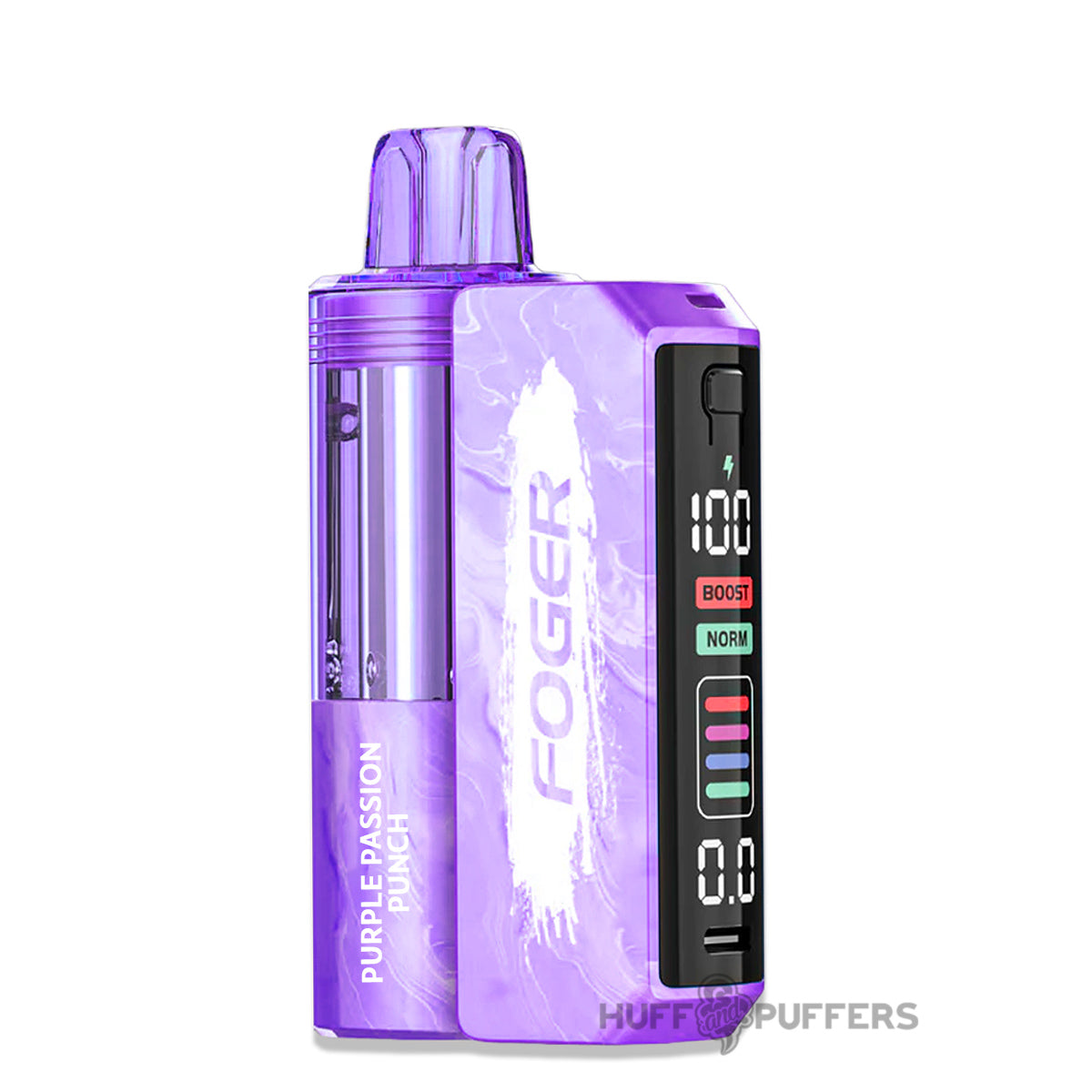 Meet the Foger Switch Pro Kit — a modular approach to disposable vapes that includes two parts: a disposable pre-filled pod and rechargeable battery. It's the answer for vapers in search of a more cost effective, eco-friendly device. The power bank uses an internal 850 mAh battery while the pod also has a 200mAh battery. The two halves magnetically connect and features pass-through charging, where charging the power bank also charges the pod. Once the pod is empty, simply replace it while keeping the power bank. Featuring a transparent tank and a smart screen, vapers can easily monitor the e-liquid levels, battery life, and even puff time.  Customizable features on the Foger Switch Pro include a dual mesh coil for smooth, consistent flavor, precise stepless airflow control, and two power modes. Vape in norm mode for up to 30,000 puffs, or pick boost mode for up to 18,000 puffs of a hotter and more flavor intensive vape.
