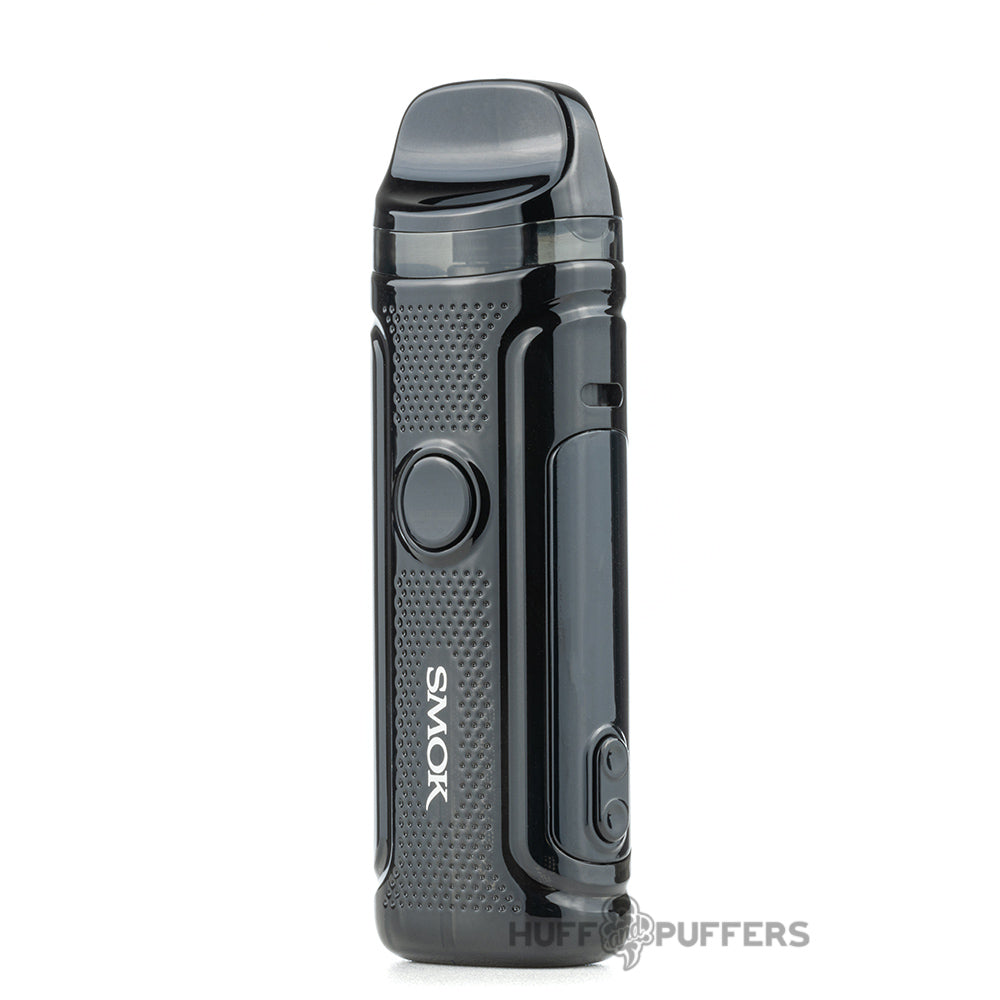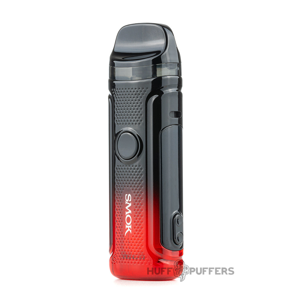 The Smok Nord C device is an all-in-one pod system which has a 50 watt maximum output and internal 1800 mAh rechargeable battery. The vape utilizes a 4.5 mL refillable pod that takes a replaceable coil and is filled via the top fill system. Adding to the user experience are dual button adjustments and a 0.96" OLED screen that displays settings such as power, resistance, voltage, battery life, and puff count. The Nord C features a stepless airflow control system that delivers smooth, dense, and flavorful vape with each puff.