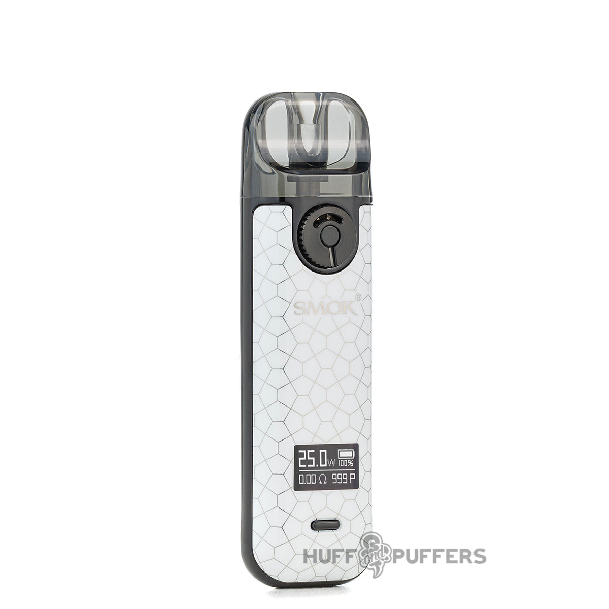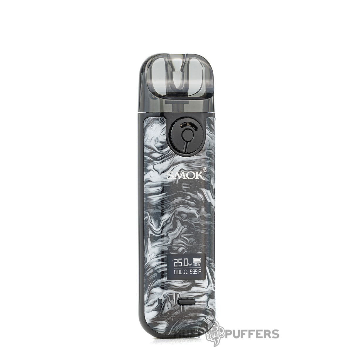 The Smok Novo 4 Pod Device is a small and portable vape system that features an internal 800 mAh rechargeable battery and a 25 watt maximum output. It utilizes a refillable 2mL pod and coil system where e-juice is filled via the side silicone port. Coils are installed at the bottom of the pod and features a press-fit mechanism. A 0.8 ohm direct-lung and DC 0.8 ohm mouth-to-lung coil come included with the kit and is designed for salt nicotine e-liquid. The Smok Novo 4 also implements an airflow control dial, uses a single wattage control button, and features a draw-activation firing mechanism.