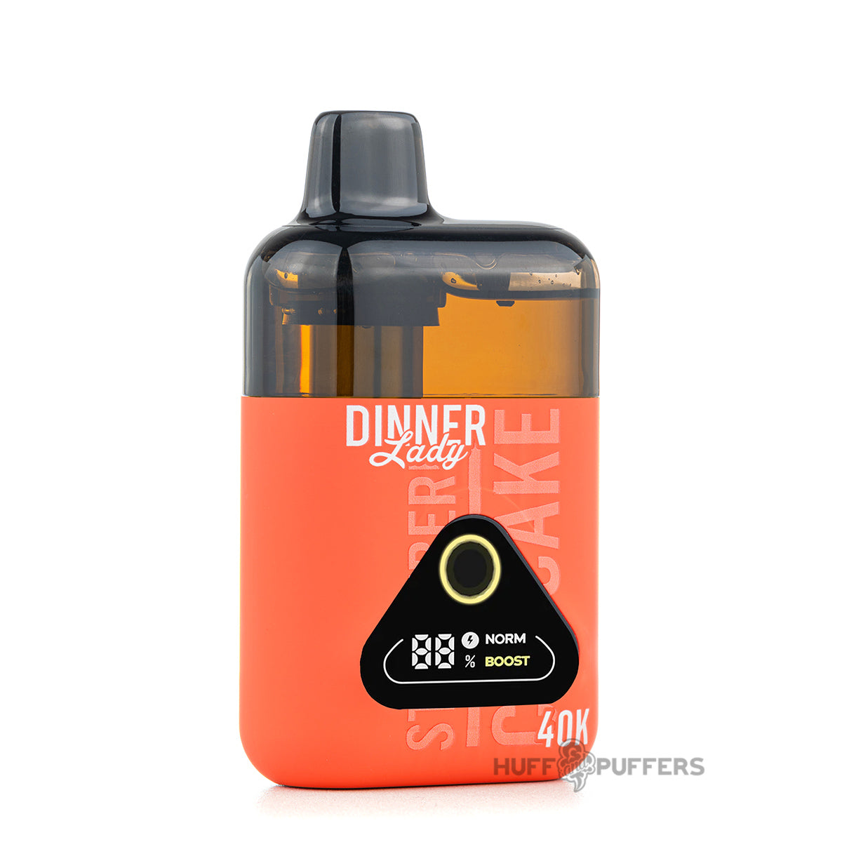 The Dinner Lady Desserts 40K Disposable Vape delivers premium UK-made dessert flavors in a high-capacity, easy-to-use device. Each vape is pre-filled with 15mL of 5% salt nicotine e-liquid for a smooth and consistent experience.