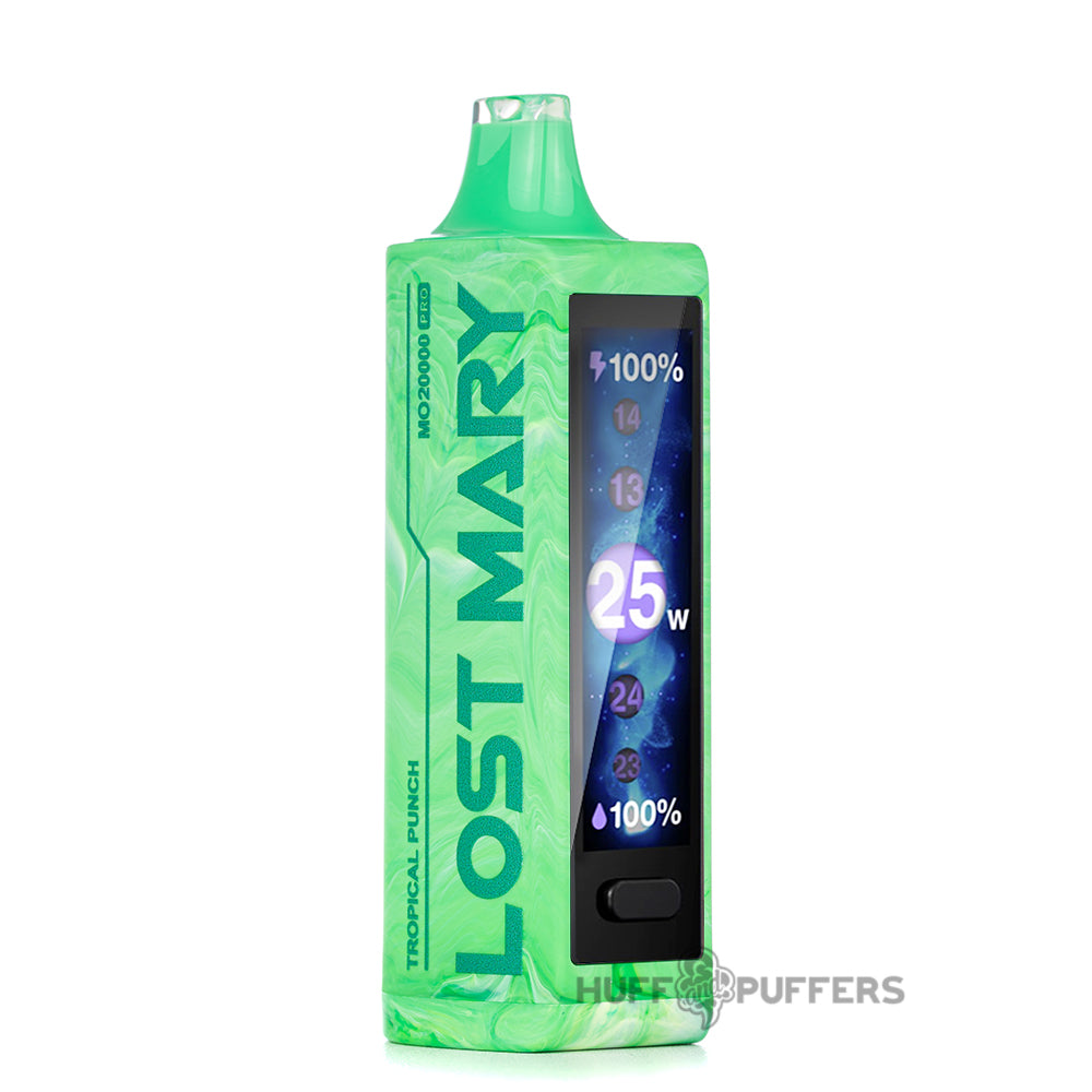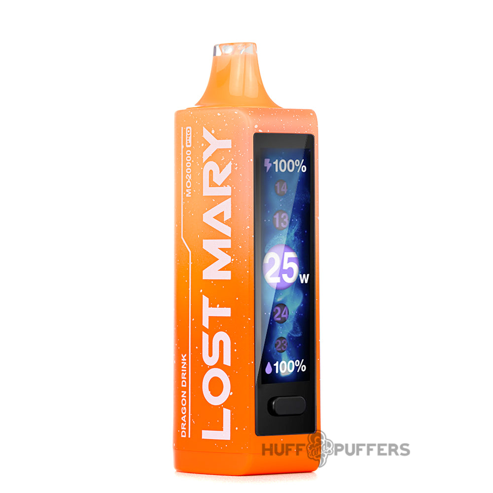 Enjoy a blend of aesthetics and performance with the Lost Mary MO20000 Pro Disposable Vape. With its generous 18 mL of pre-filled vape juice, this Type-C rechargeable disposable vape boasts up to 20,000 puffs and is the perfect companion for your all-day vaping adventures. Personalize every hit with the adjustable wattage, ranging from 13W to 25W, and the 3 level adjustable airflow. From battery levels to e-liquid levels, the mega HD display screen will make sure that you’re always in the know of all your vaping data. With the wide variety of yummy flavors, you’re bound to find your favorite!