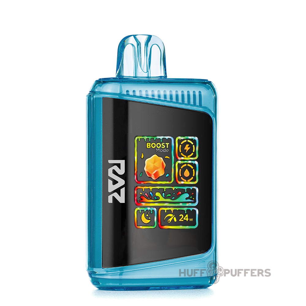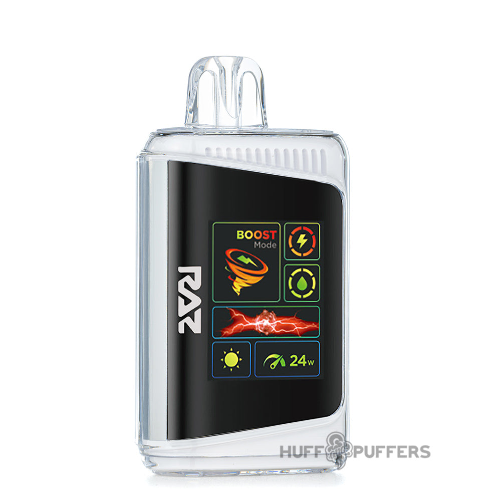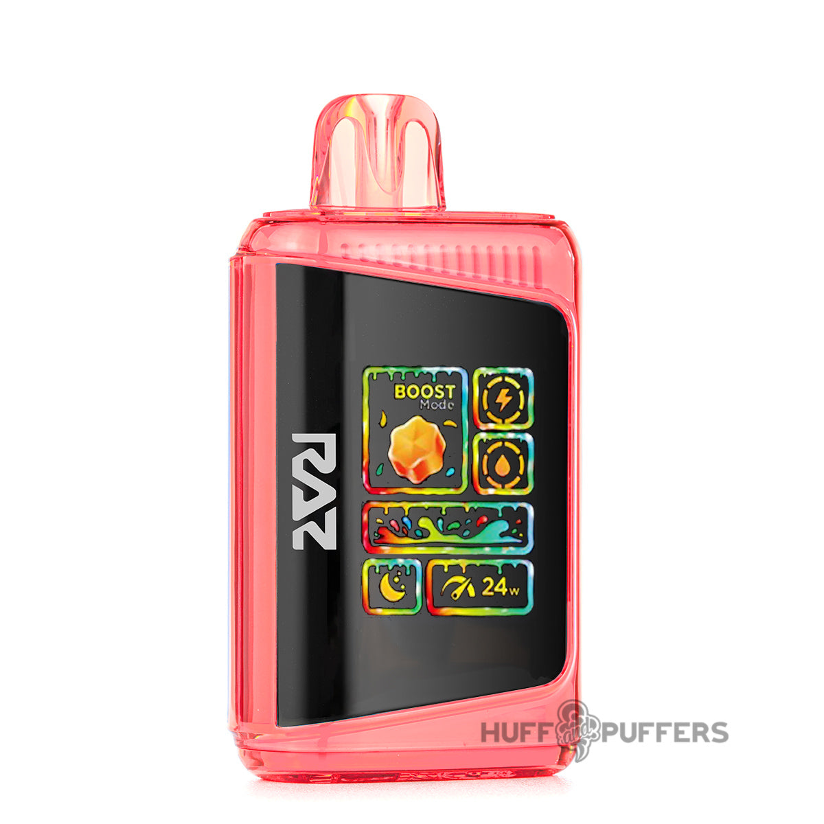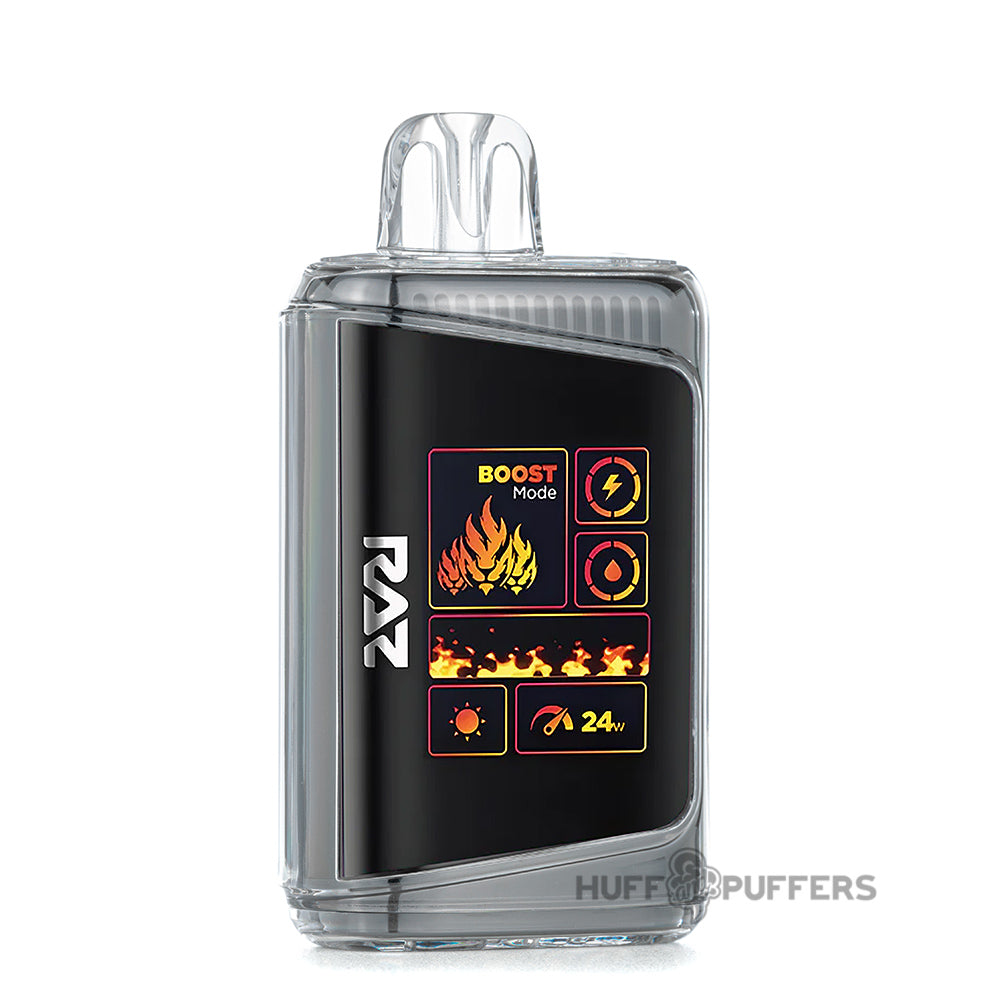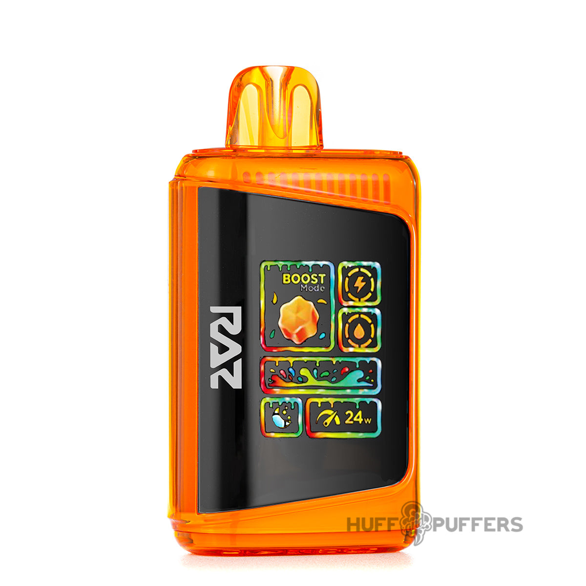 Introducing the ultimate sidekick for your vaping adventures — the RAZ LTX Disposable Vape. With 25K puffs to last you through countless escapades, this disposable e-cig will be your ticket to flavor paradise with a mouth-watering variety of flavors for you to choose from. Packed into a sleek and comfortable design, it boasts a mega HD display, giving you a crystal-clear view of your vaping states and settings while on-the-go. And with two modes to choose from — Regular Mode to savor the 25,000 puffs or Boost Mode for intense hits with enhanced flavors up to 15,000 puffs — it’s time to be in control of your vaping experience like never before! With a mix of style and performance, it's time to elevate your vaping game to the next level!