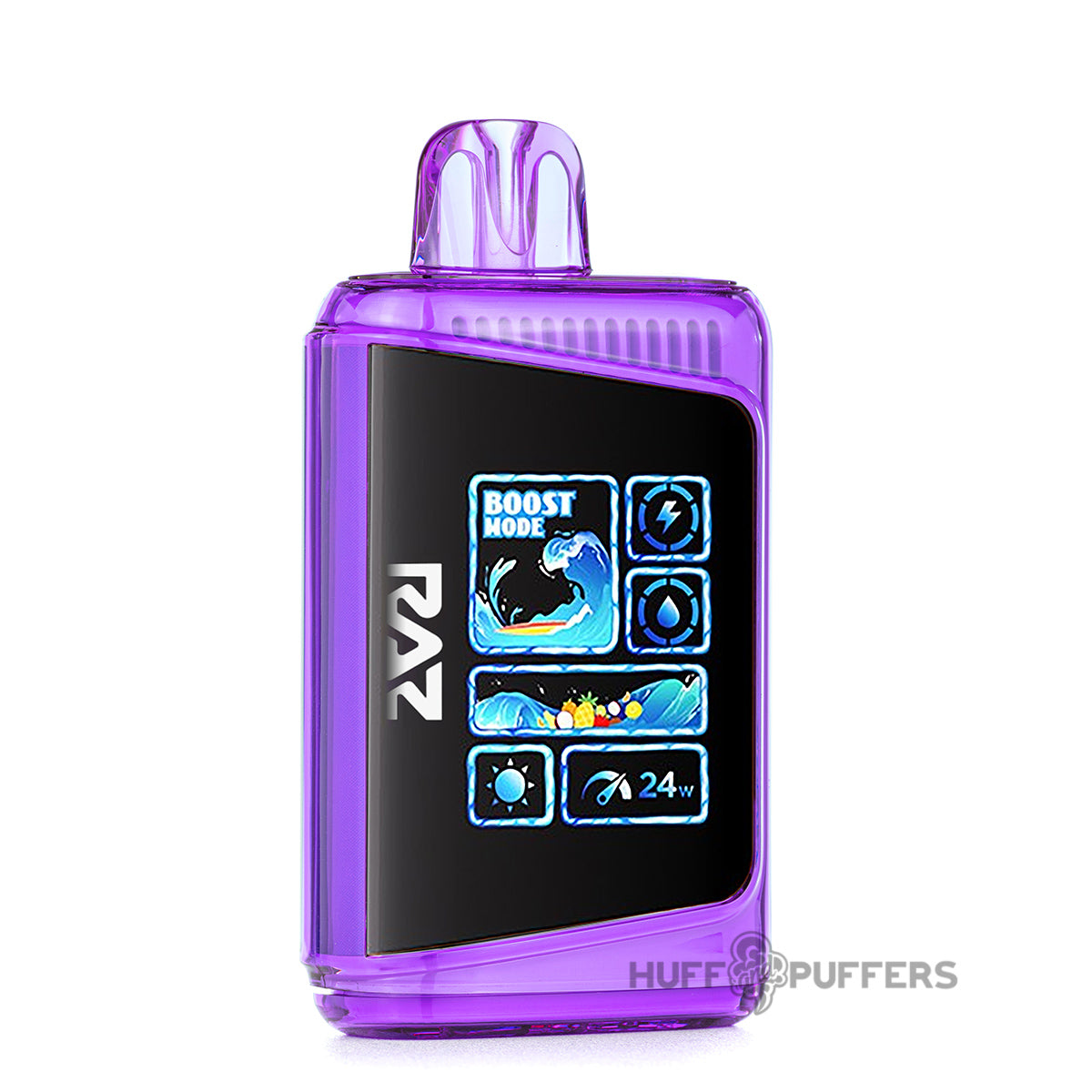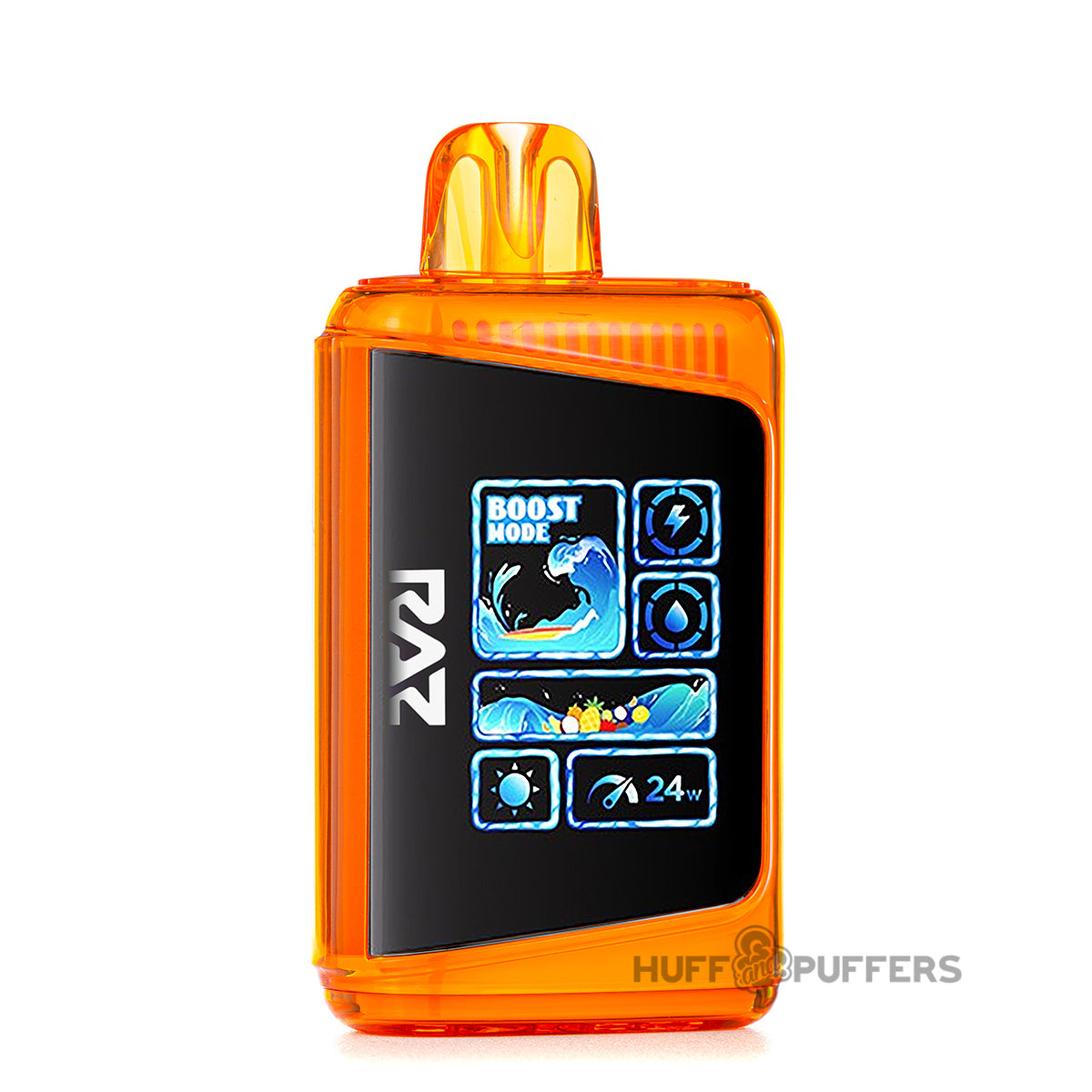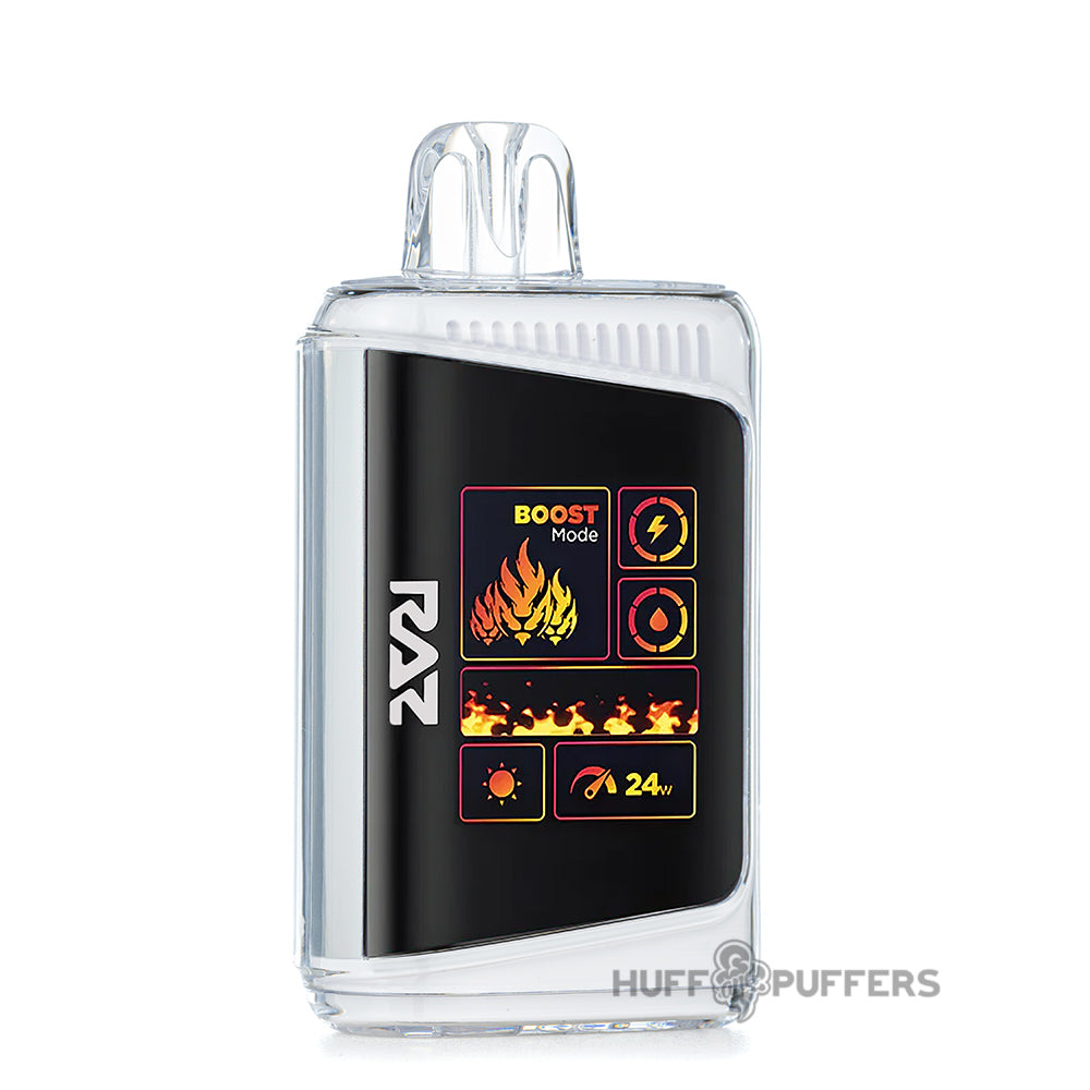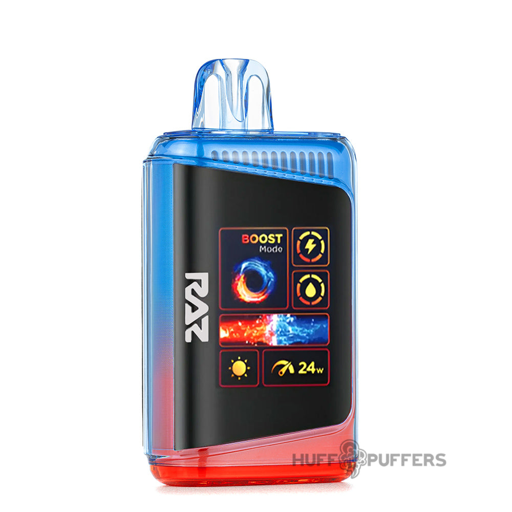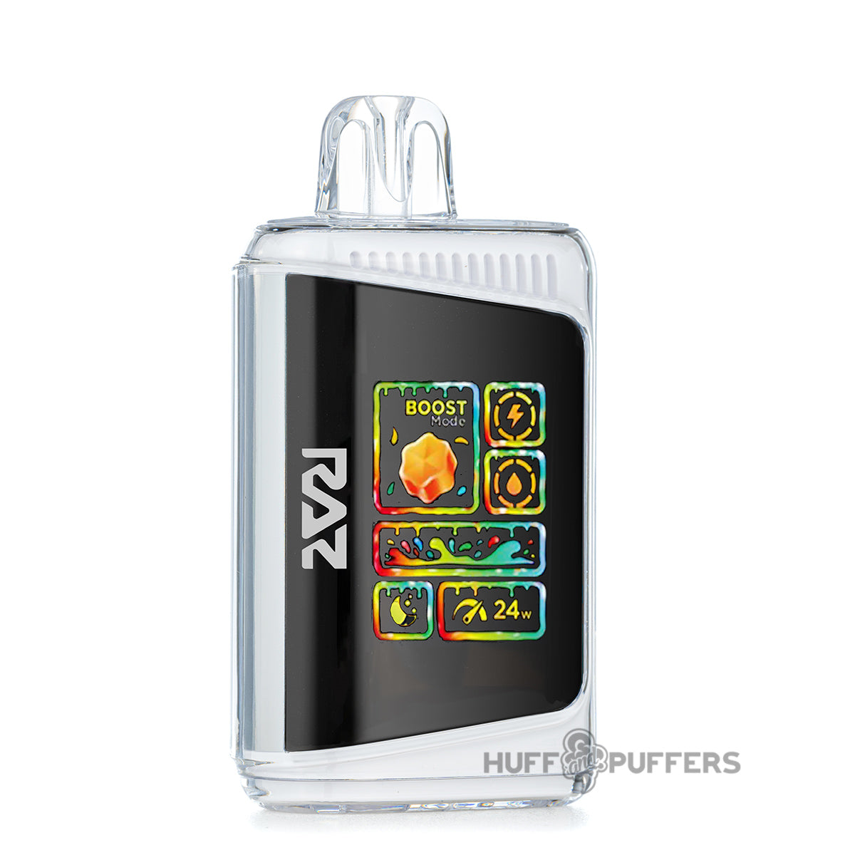 Introducing the ultimate sidekick for your vaping adventures — the RAZ LTX Disposable Vape. With 25K puffs to last you through countless escapades, this disposable e-cig will be your ticket to flavor paradise with a mouth-watering variety of flavors for you to choose from. Packed into a sleek and comfortable design, it boasts a mega HD display, giving you a crystal-clear view of your vaping states and settings while on-the-go. And with two modes to choose from — Regular Mode to savor the 25,000 puffs or Boost Mode for intense hits with enhanced flavors up to 15,000 puffs — it’s time to be in control of your vaping experience like never before! With a mix of style and performance, it's time to elevate your vaping game to the next level!